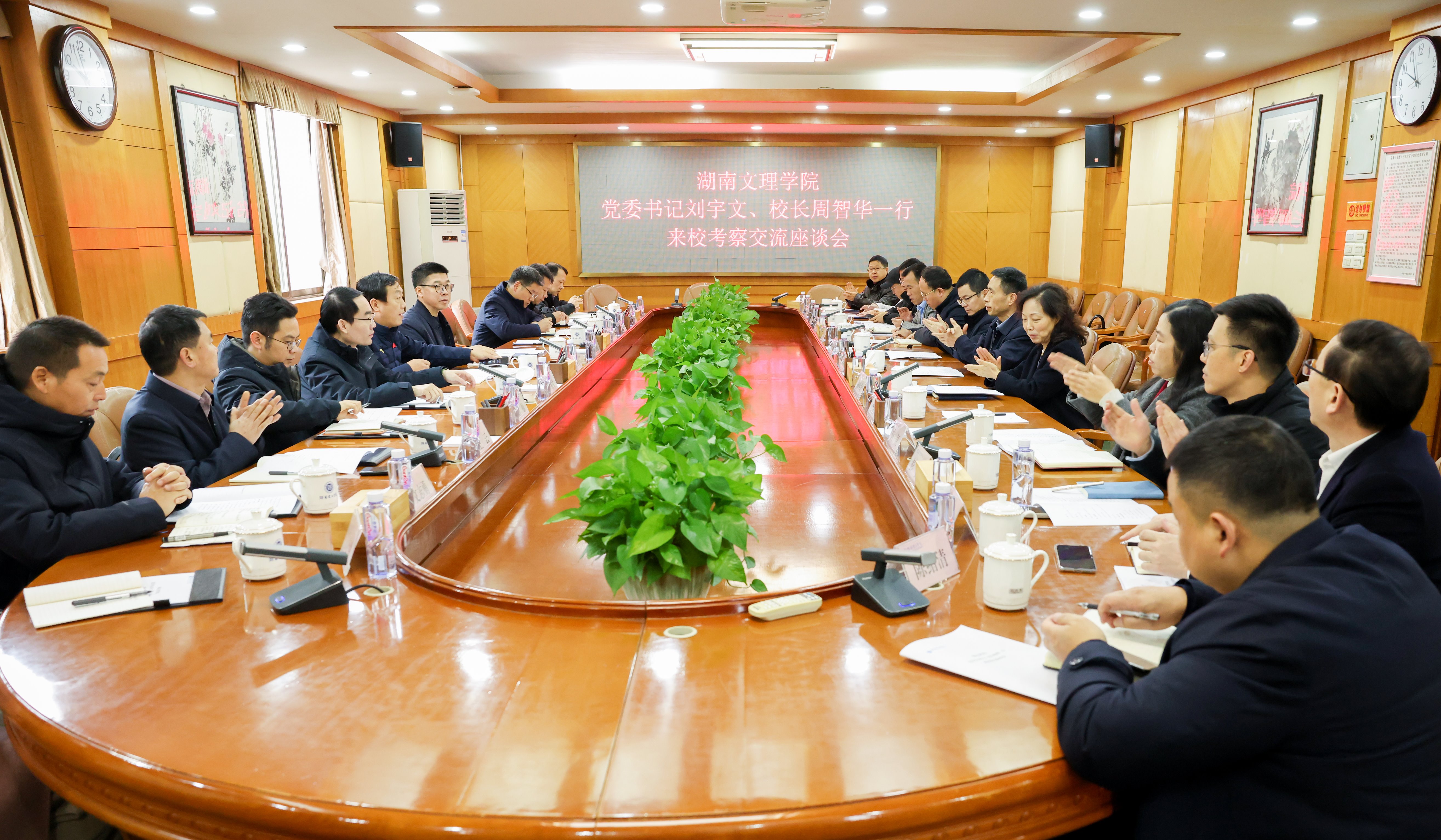 湖南文理学院党委书记刘宇文、校长周智华一行来校考察交流座谈会举行校党委书记张国云主持座谈会并讲话湖南文理学院党委书记刘宇文参加并讲话湖南文理学院党委副书记、校长周智华参加考察交流活动校园网讯 1月5日,湖南文理学院党委书记刘宇文、校长周智华一行来校考察交流,校党委书记张国云陪同并主持召开两校交流座谈会。湖南文理学院党委委员、副校长覃佐东,学校党委副书记徐小立,党委委员、副校长李建奇参加。张国云热烈...