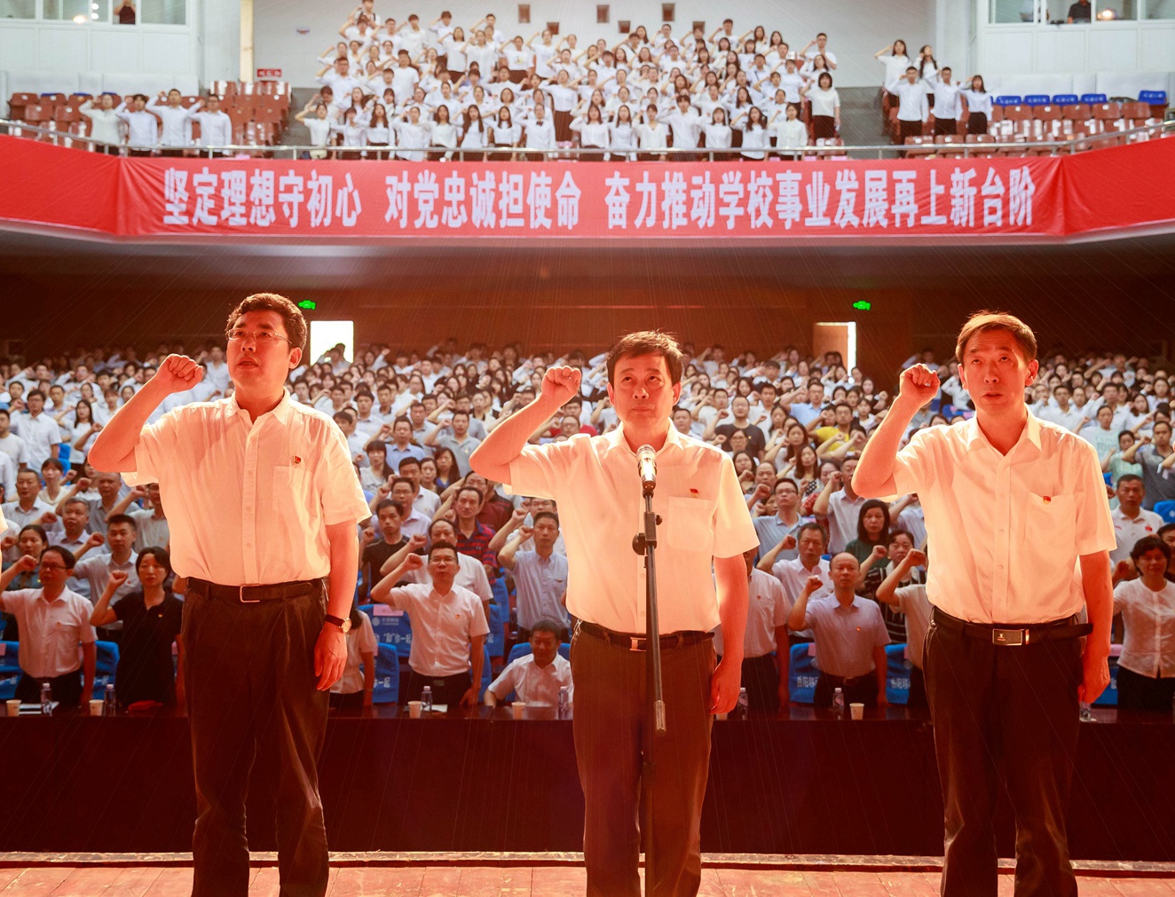号召全体党员听党话、跟党走,不忘初心、牢记使命,为促进学校高质量发展多做贡献、再立新功。