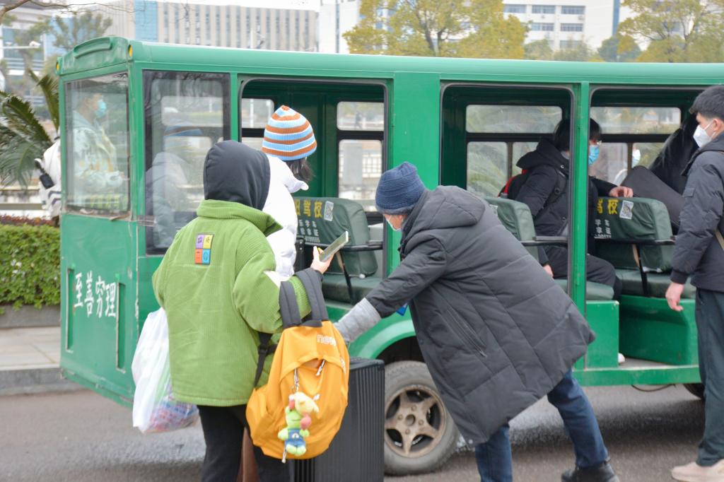 2月19日,返校首日,到校学生按照要求先后扫码、接受体温测试、出示健康码和身份证,依次进入校园。