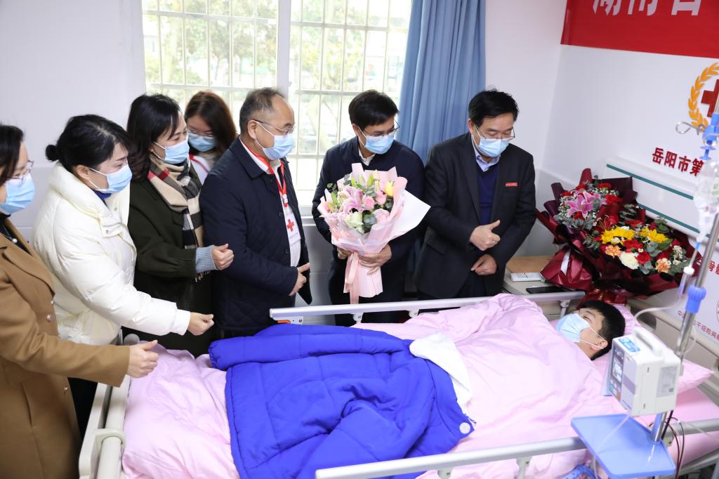 唐斌同学正在进行造血干细胞采集学工部、信息学院负责人看望唐斌同学校园网讯(陶海兰 邱莎)1月10日上午11点,在岳阳市中心医院的造血干细胞采集病室里,我校信息学院的大三学生唐斌已经完成了血液采集。分离器正在缓慢转动,病房里渐渐安静下来,唐斌也沉沉睡去。唐斌是我校2022年首例造血干细胞捐献者,去年6月,他接到岳阳市红十字会打来的电话,告知在千里外有一位白血病患者与他配型成功,急需造血干细胞移植,“当时只想...