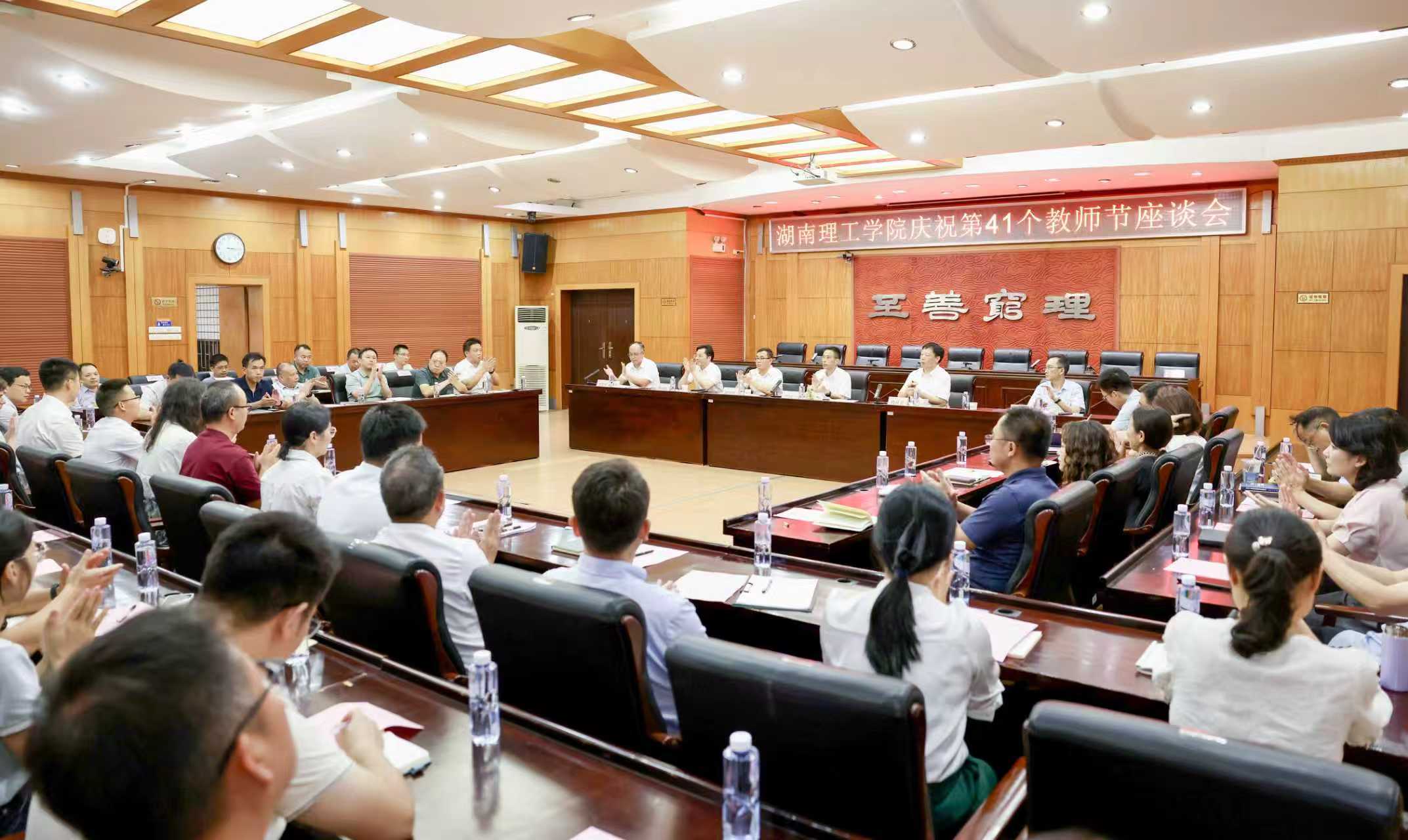 9月9日下午,湖南理工学院庆祝第41个教师节座谈会召开学校党委书记张国云向全校广大教职工致以节日的问候和崇高的敬意校长曾祥君出席并讲话校园网讯 9月9日,学校召开庆祝第41个教师节座谈会,深入学习贯彻习近平总书记关于教育的重要论述,进一步激励广大教师积极投身教育强国建设实践,凝心聚力推动学校事业高质量发展。校党委书记张国云、校长曾祥君出席并讲话,谢贵辉、汤小红、丁跃浇等校领导参加,副校长刘长辉主持。张国...