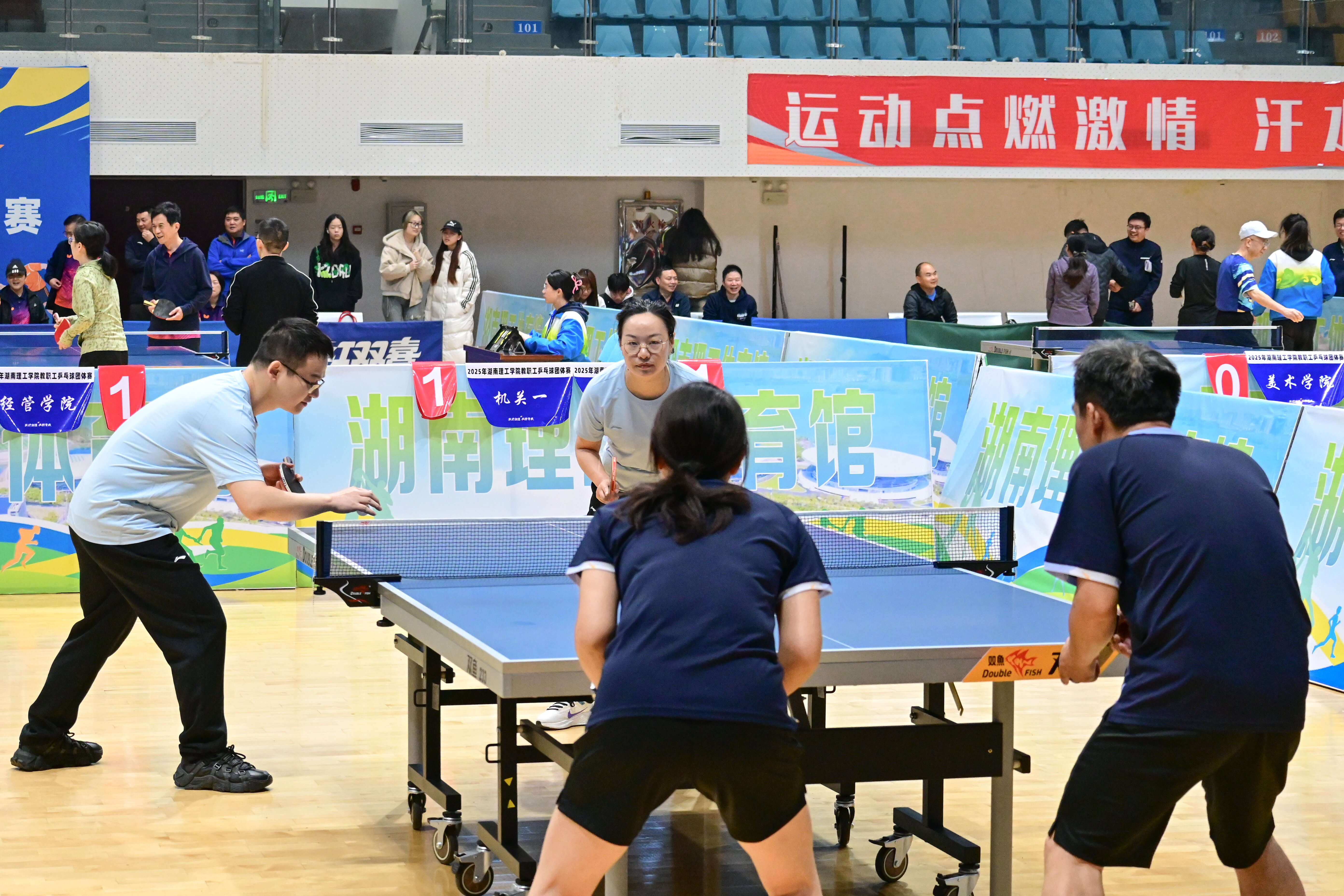校园网讯 11月15日上午,学校2025年教职工乒乓球赛在南院体育馆举行。校领导张国云、谢贵辉、徐小立、刘长辉、胡文静出席开幕式,全校19支代表队近200名教职工运动员参加比赛。校党委书记张国云宣布湖南理工学院2025年教职工乒乓球赛正式开幕。党委副书记、校工会主席徐小立在致辞中表示,教职工乒乓球赛是老师们展示风采、切磋技艺的平台,更是学校落实全民健身计划,推进校园体育运动发展的重要举措。她希望教职工们通过比赛...