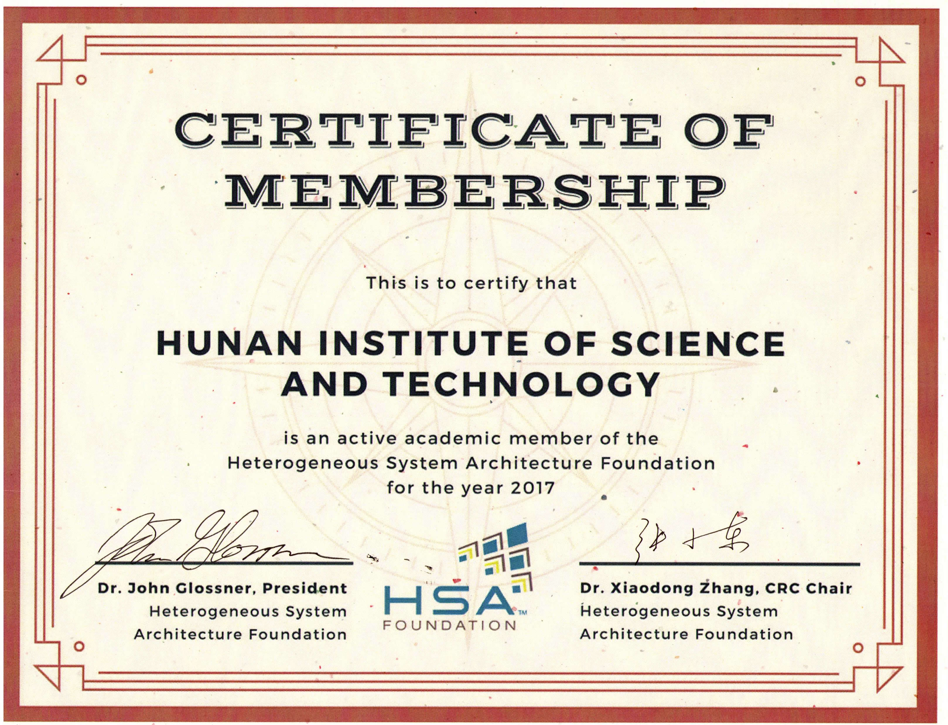 由HSA联盟主席John Glossner博士与中国区主席张小东博士共同签署的HSA会员证书 校园网讯12月19日,异构计算(HSA)联盟正式发函我校,经过HSA联盟全球主席John Glossner博士的核准,并上报联盟董事会批准,我校已获准...