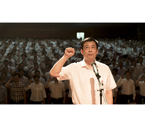 在学校党委书记李明的带领下,学校千余名师生党员面对鲜艳的党旗,高举右手,重温入党誓词。