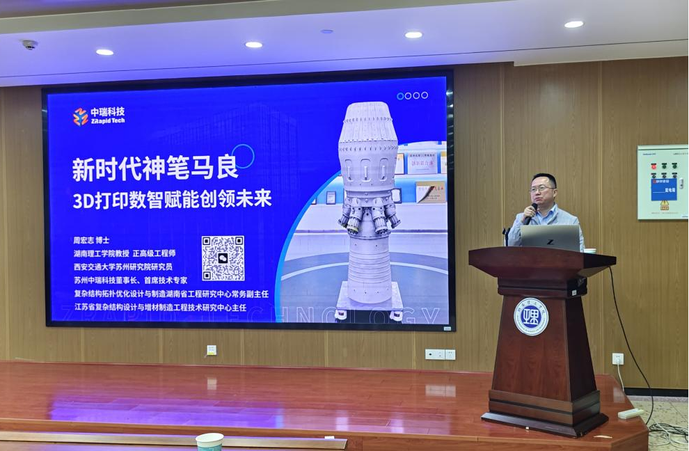 校园网讯3D打印融校园,指尖制造新未来。10月22日下午,中瑞科技董事长、我校机械工程学院特聘教授周宏志受邀于17102会议室为机械学院2025级材料成型及控制工程专业新生开展“新时代神笔马良3D打印数智赋能创领未来”专题讲座。周宏志以“新时代神笔马良”为喻,生动诠释了3D打印技术从“概念”到“现实”的突破。他结合中瑞科技在航空航天、医疗设备、汽车制造等领域的3D打印应用案例,详细讲解了3D打印技术的原理、主流工艺(...