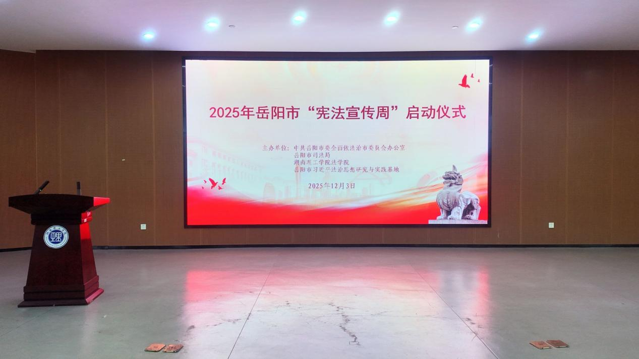 校园网讯12月3日上午,“对话”交互式青年思政课堂暨2025年岳阳市“宪法宣传周”在我校成功启动。华容县司法局吴紫晴、岳阳市强制隔离戒毒所任杰作为宣讲嘉宾出席。本次课堂以“2025年岳阳市宪法宣传周”为主题,与会师生共同学习了习近平总书记对全面依法治国工作作出的重要指示和中央全面依法治国工作会议精神,通过观看普法微视频,以案例形式强化法治教育,深刻领会了推进国家各方面工作法治化对于中国式现代化建设的重大意...